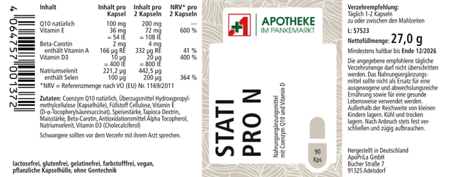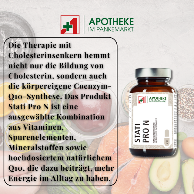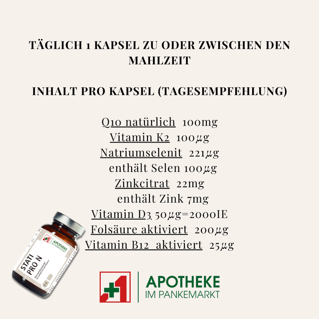 Stati Pro N – die perfekte Ergänzung zu Statinen! Mit Coenzym Q10, Vitamin B12, D3, K2, Zink & Selen zur Unterstützung deines Energiestoffwechsels und Zellschutzes. 💪💙