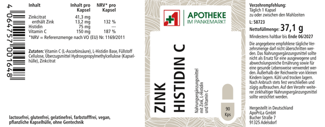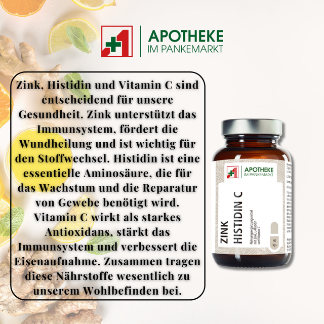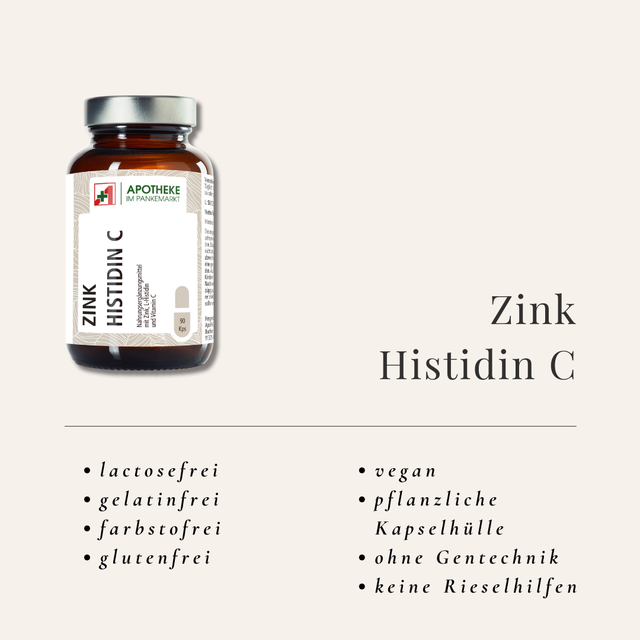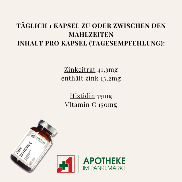 Die Kombination aus Zink, Histidin und Vitamin C unterstützt dein Immunsystem, schützt vor oxidativem Stress und fördert eine gesunde Haut. 🌿✨